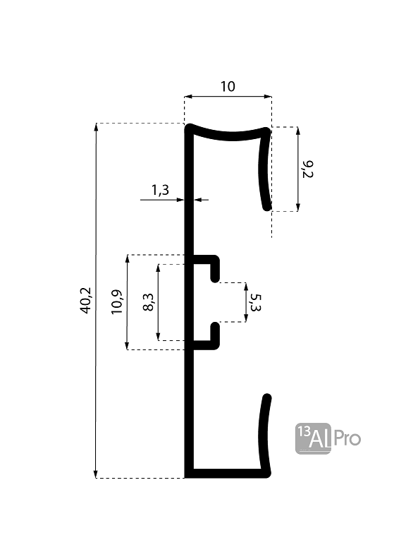 НазваниеПлинтус 13-4036 алюминиевый анодированный L 40 "Брусок" черный матовый 2,95 м