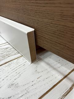 Плинтус на основе ХДФ - уникальный продукт и непревзойденное качество. Устойчив к повреждениям. Благодаря эластичному краю сверху и снизу – достигается максимально возможное примыкание к стене и полу