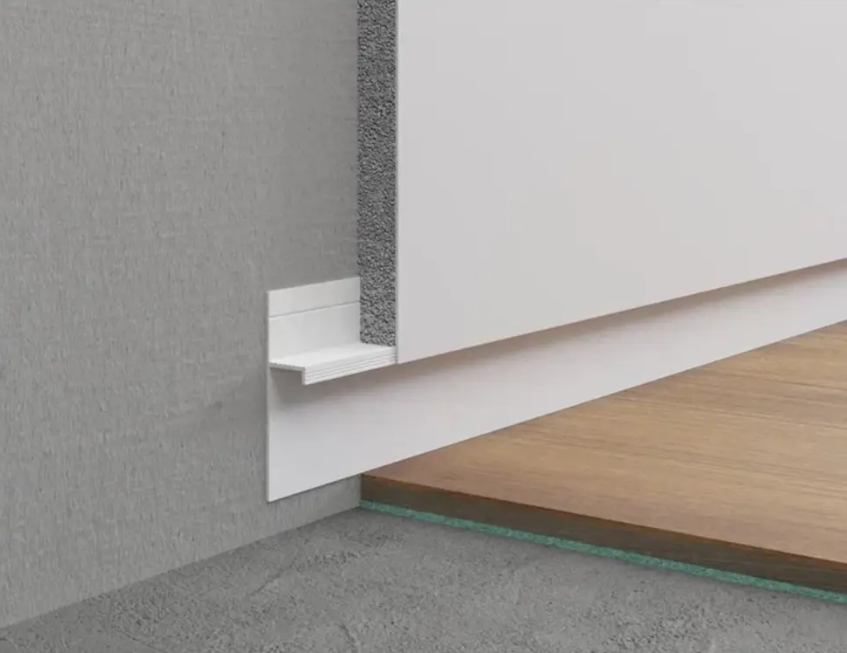 - Можно комбинировать с алюминиевым уголком, чтобы скрыть компенсационный зазор
