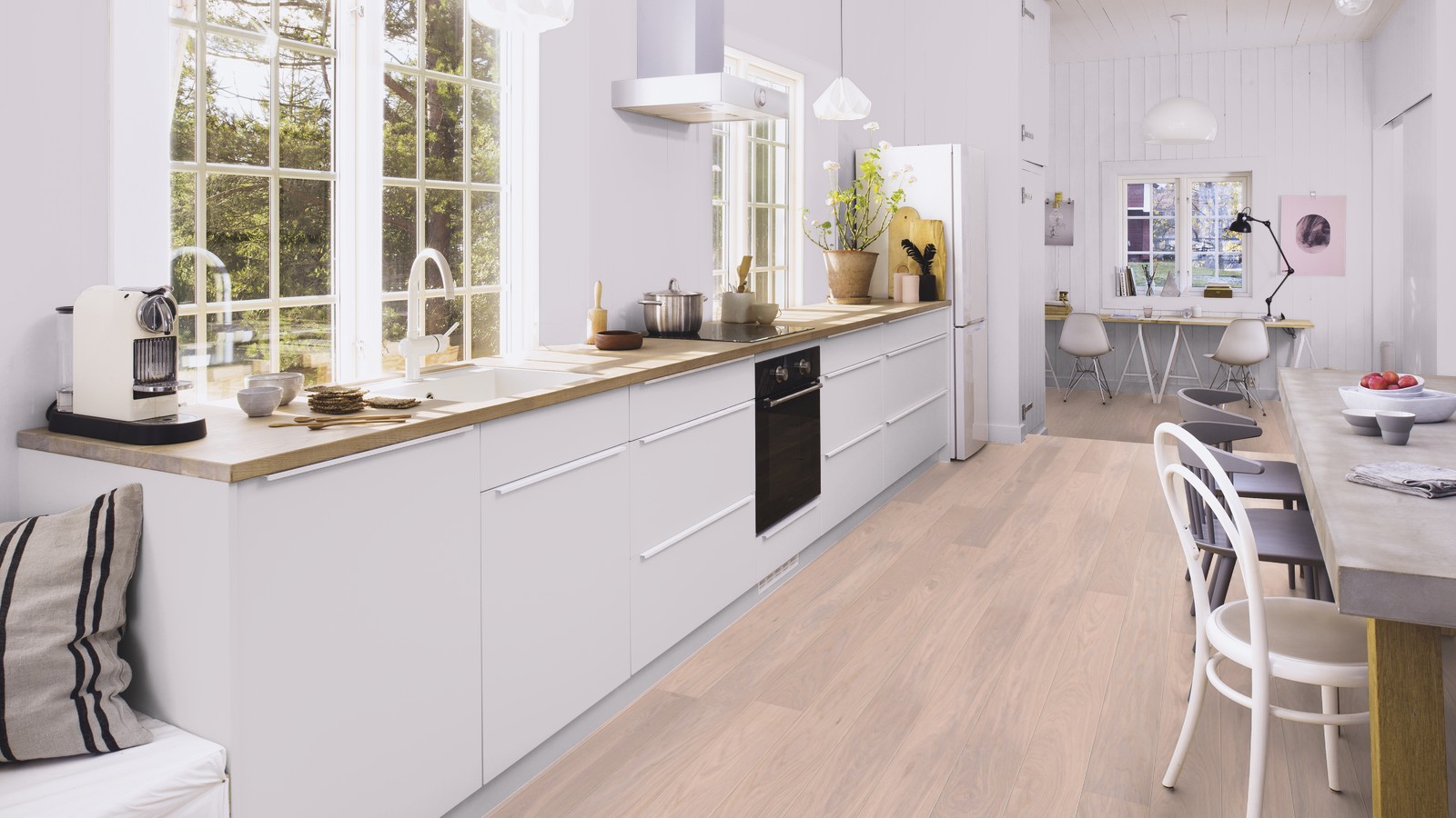 Boen коллекция Stonewashed однополосная паркетная доска дуб Pearl. Брашированная с жемчужно-белым пигментом.
