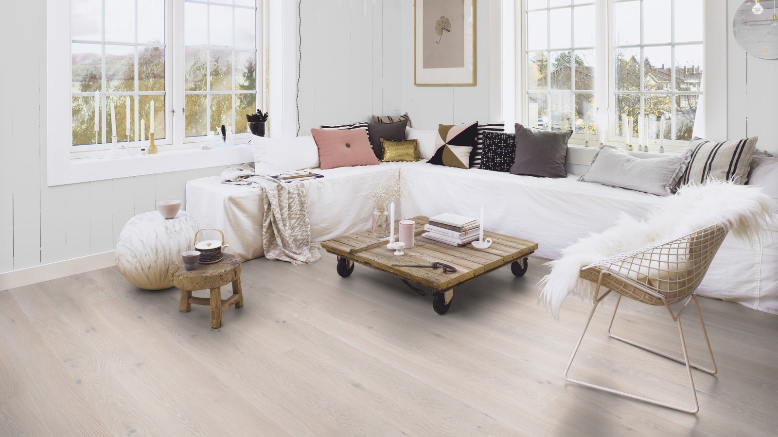 Новинка 2016 года! Boen коллекция Stonewashed однополосная паркетная доска дуб White Stone. Брашированная, покрытая натуральным маслом с ярко белым пигментом.