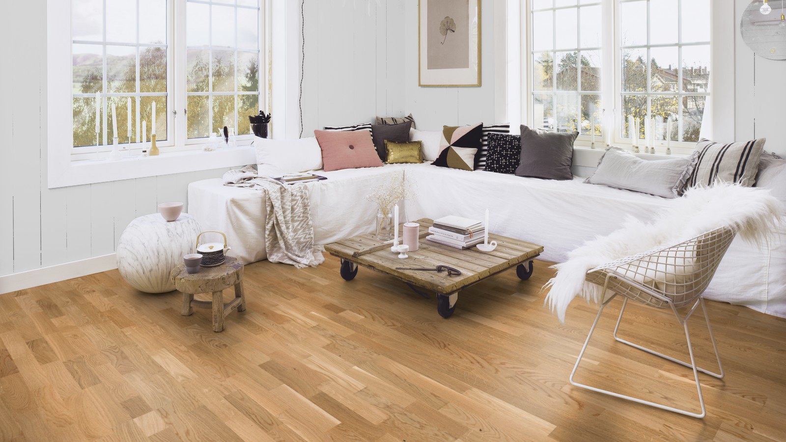 Паркетная доска дуб белый Анданте 215 мм мат лак