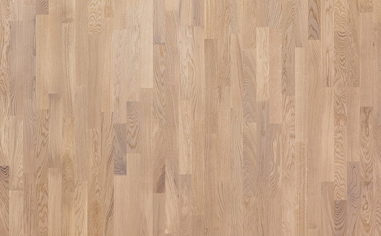 Классическая трехполосная доска из дуба под белым матовым лаком.