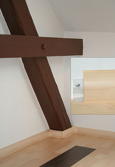 Плинтус может перекрывать зазор до 3 см. Легкий монтаж на планку, поставляющуюся в комплекте.Вам достаточно прикрепить планку к стене и на нее защелкнуть плинтус.